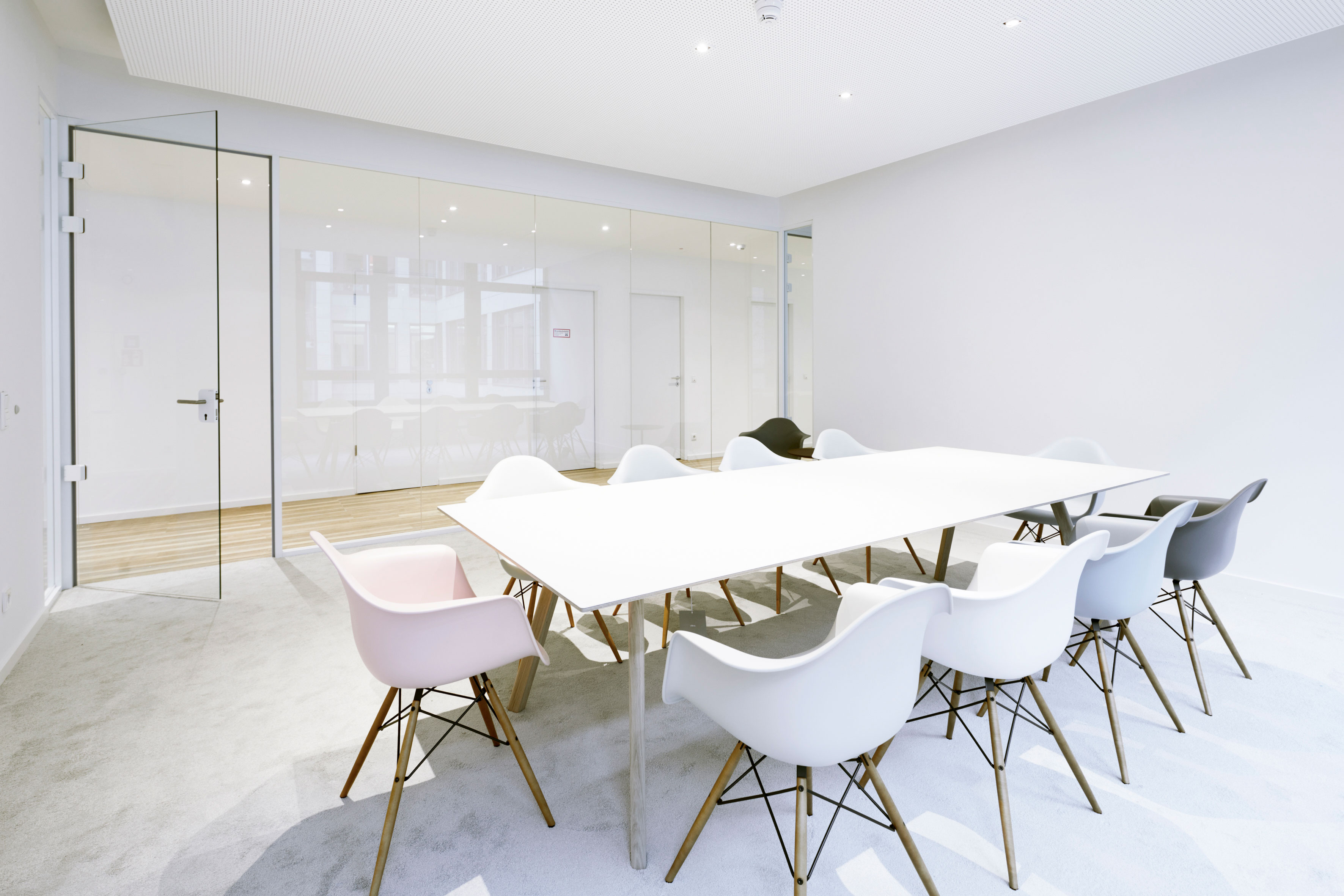 Der flexible Grundriss lässt auch offene Bürokonzepte und damit ein kommunikatives Miteinander zu. Kurz Wege sorgen für schnelle Entscheidungen.